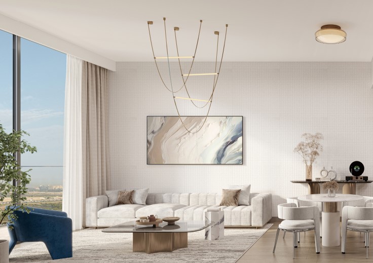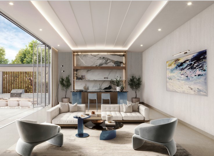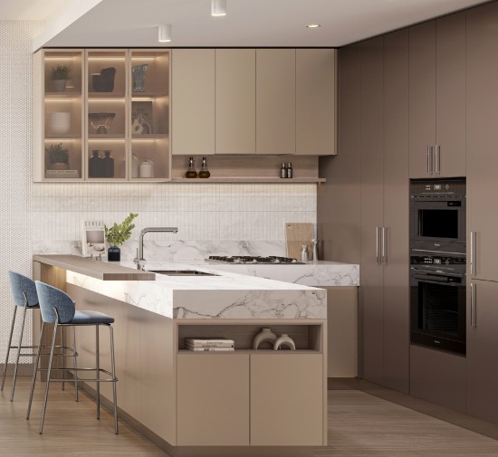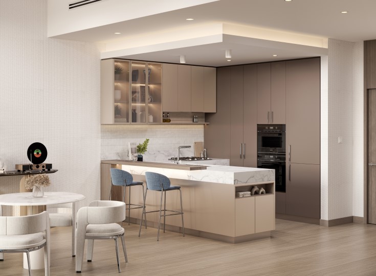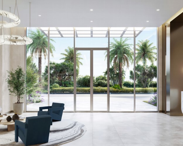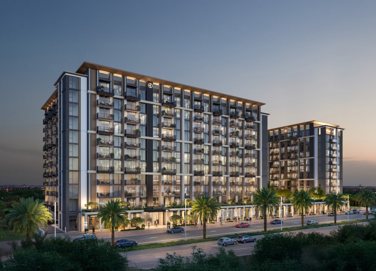Лаконичная стилистика с акцентом на вертикальные линии, просторные балконы и большие окна